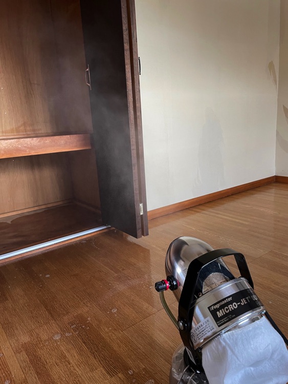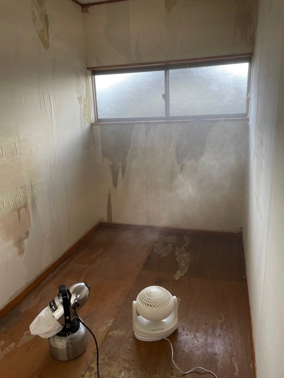 全ての室内、収納内の消臭、残置物撤去、ハウスクリーニング、壁紙クロスはがし後、フローリング、木部を中心にスチーム洗浄。
